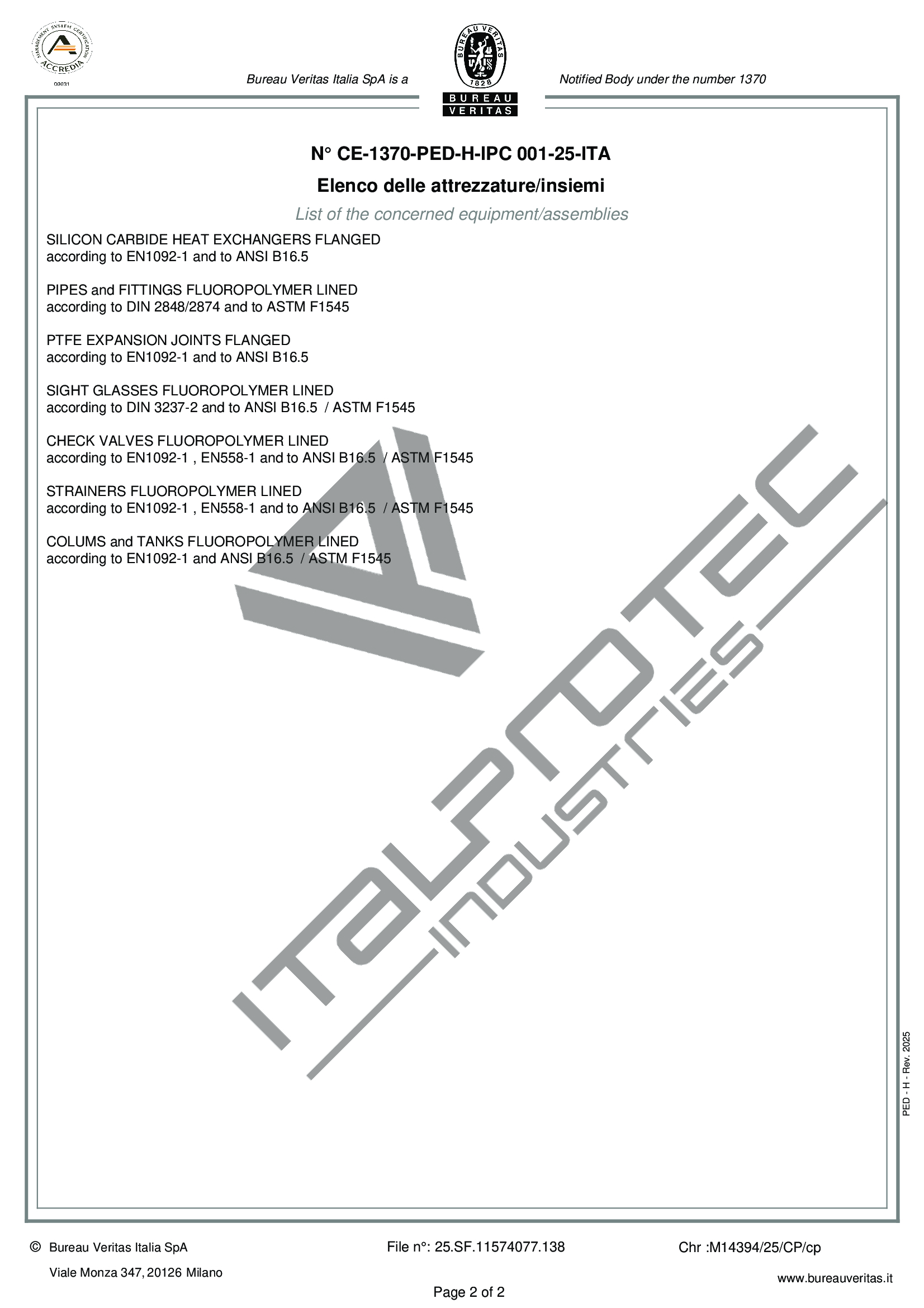 Tutti i prodotti ITALPROTEC INDUSTRIES possono essere forniti con certificati di conformità o di collaudo secondo le norme EN 10204.